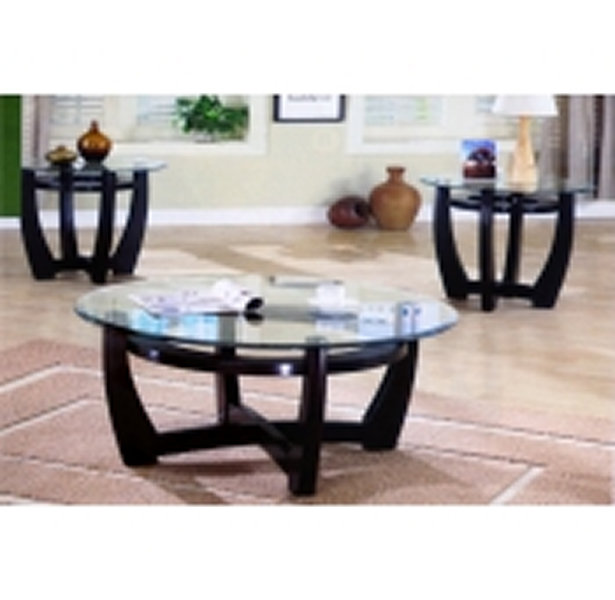 Minimalist black legs forming a soft wave shape beneath a clear glass top — light, airy, stylish. Includes: Coffee table + 2 side tables.