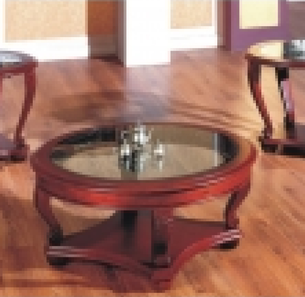 Round Glass-Top Cherry Wood Table Set
